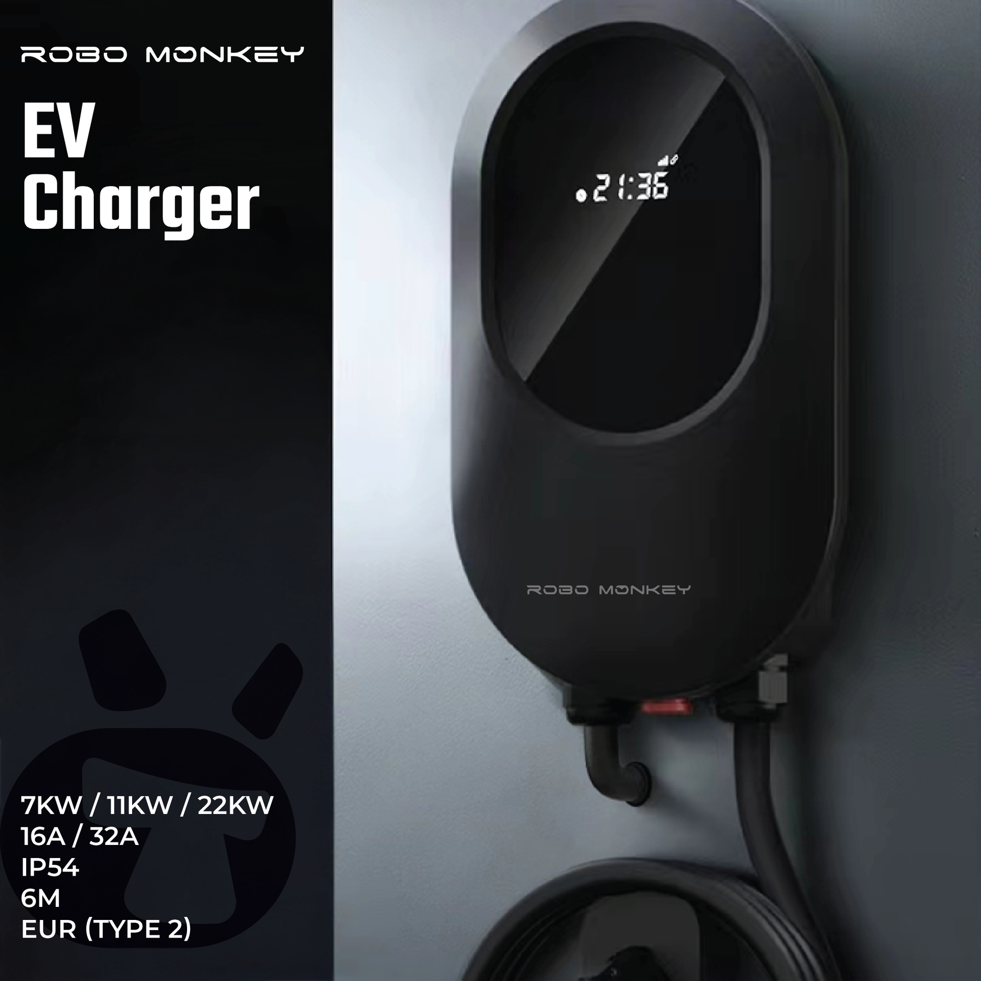 Robo Monkey EV electric vehicle charger 7KW, 11KW, 22KW single-phase/three-phase charger with charging gun plug and play TYPE2